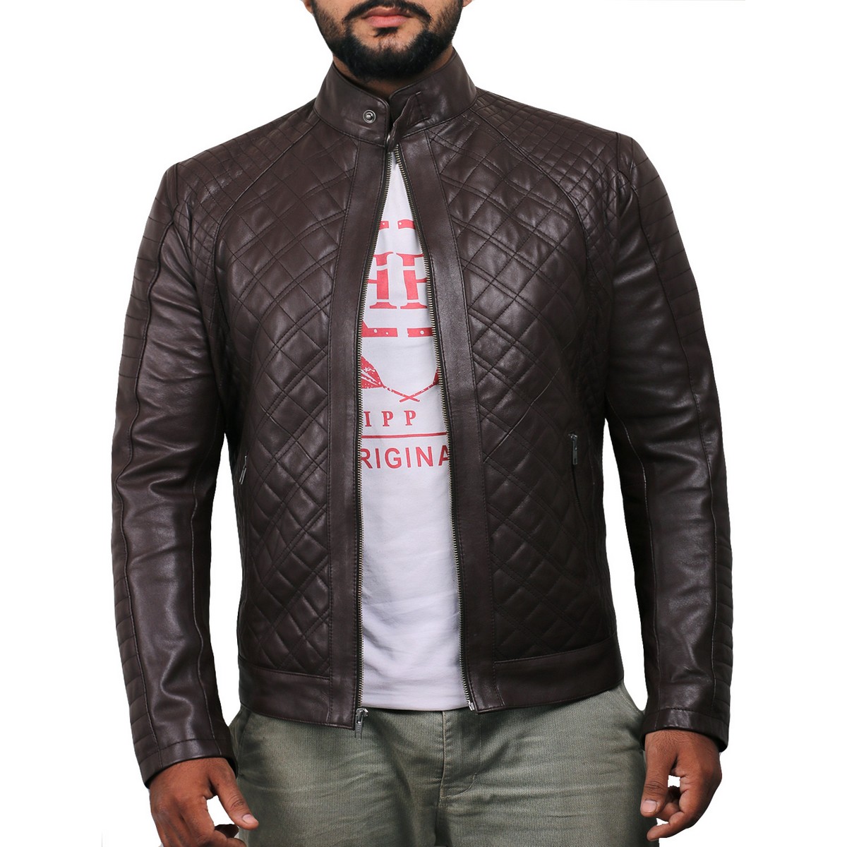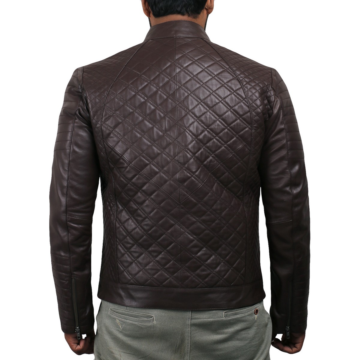Zafy Leather Brown Men's Jacket Pure Sheepskin Biker Quilted Racer Jacket
