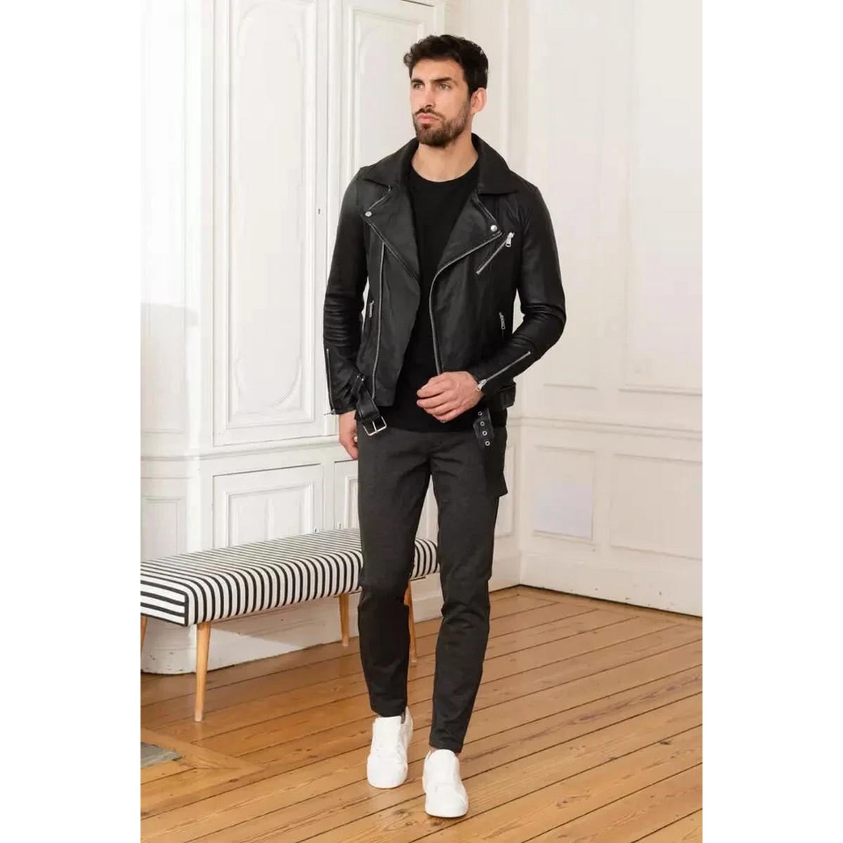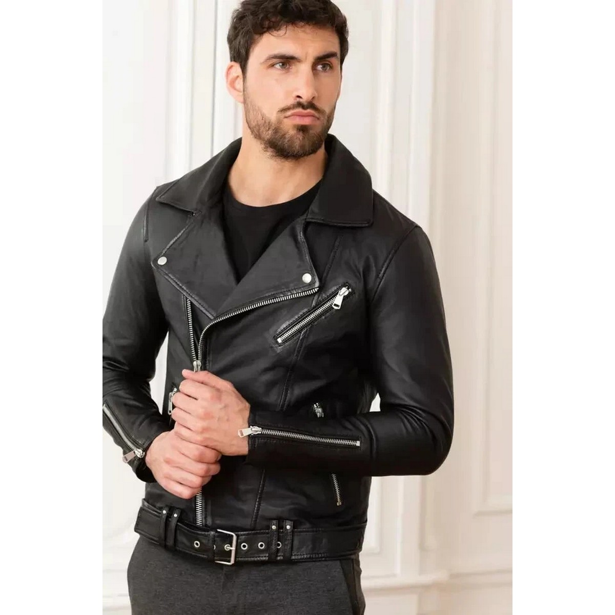 Zafy Leather Black Leather Jacket For Men Pure Sheepskin Slim Fit Biker Racer Jacket