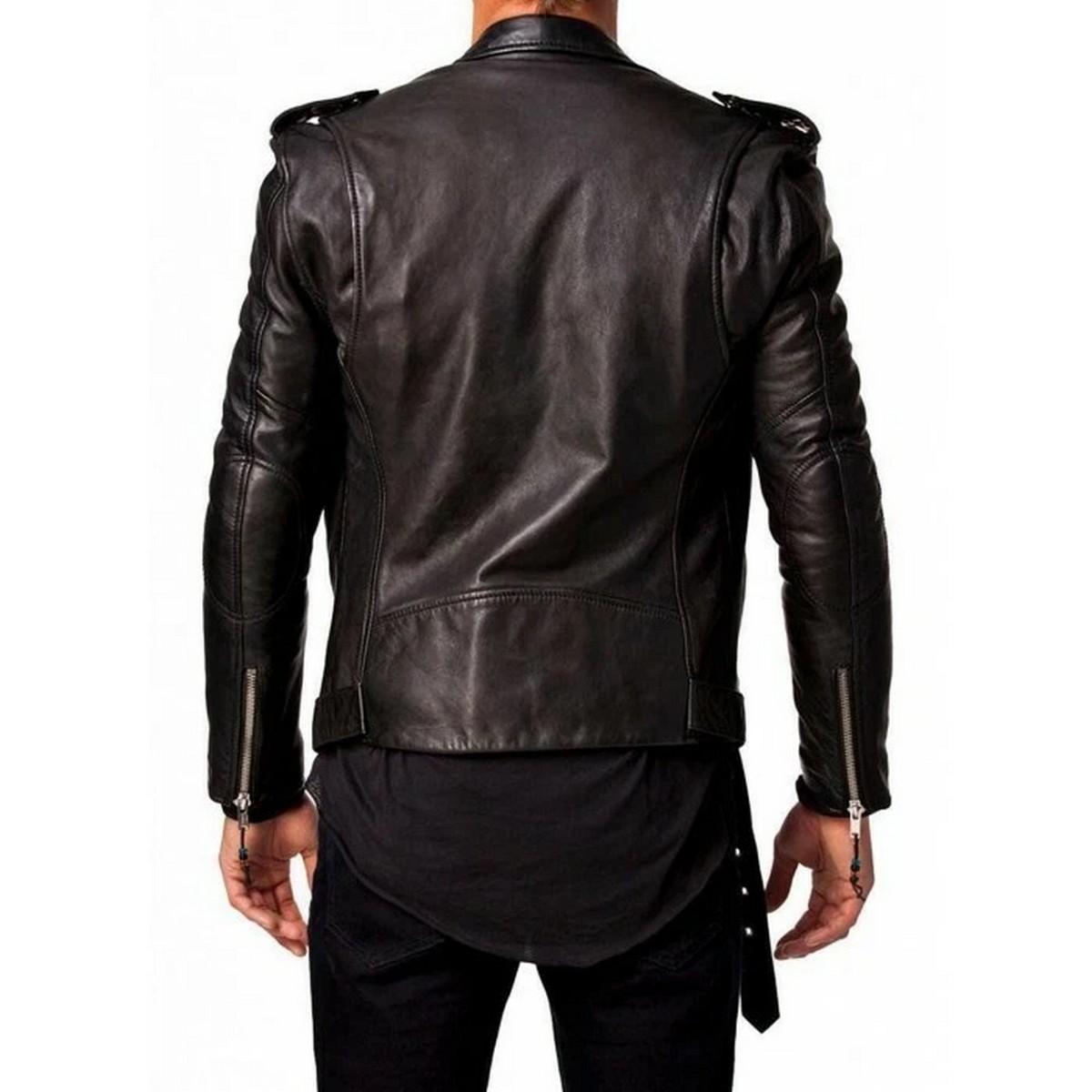 Zafy Black Biker Leather Jacket for Men - Genuine Lambskin