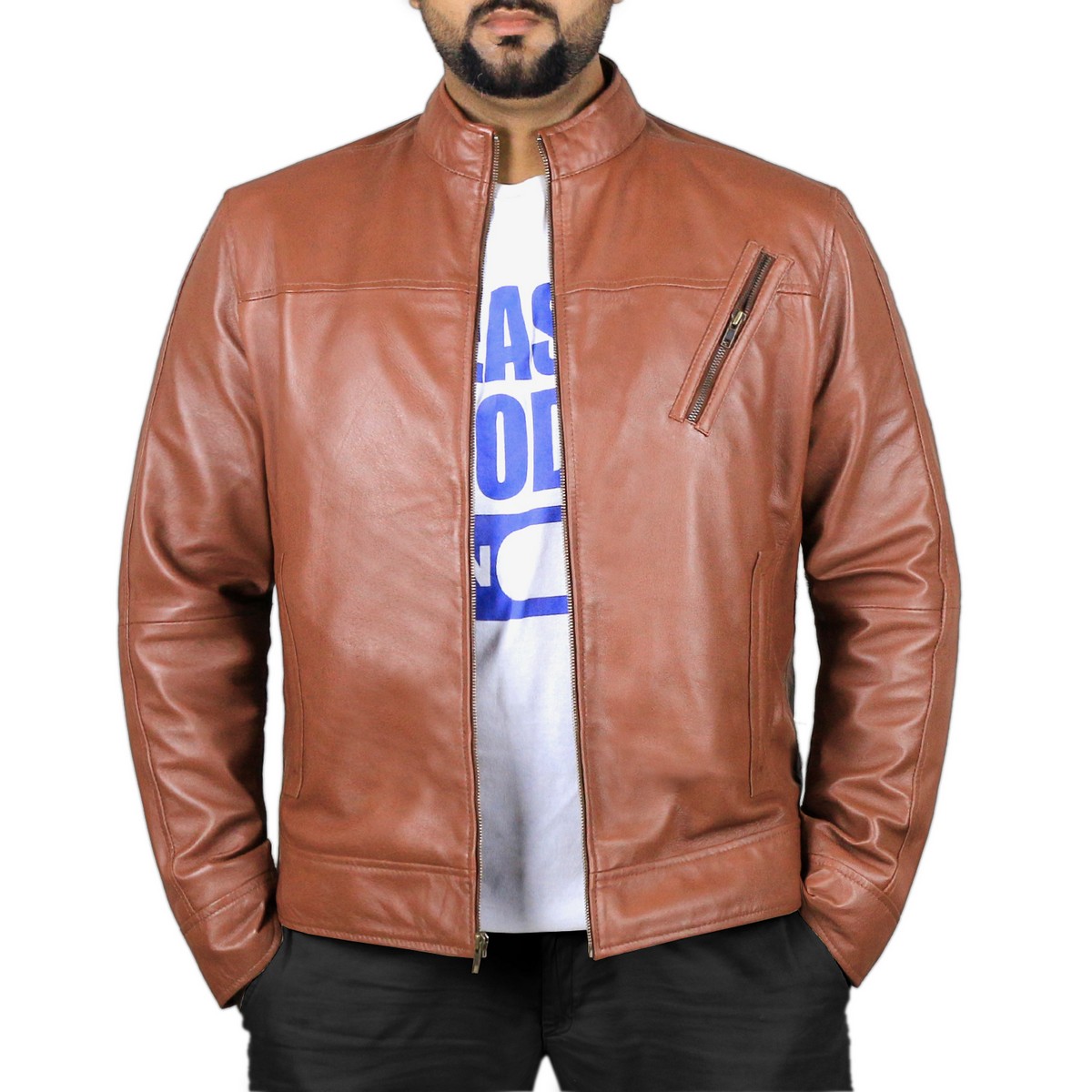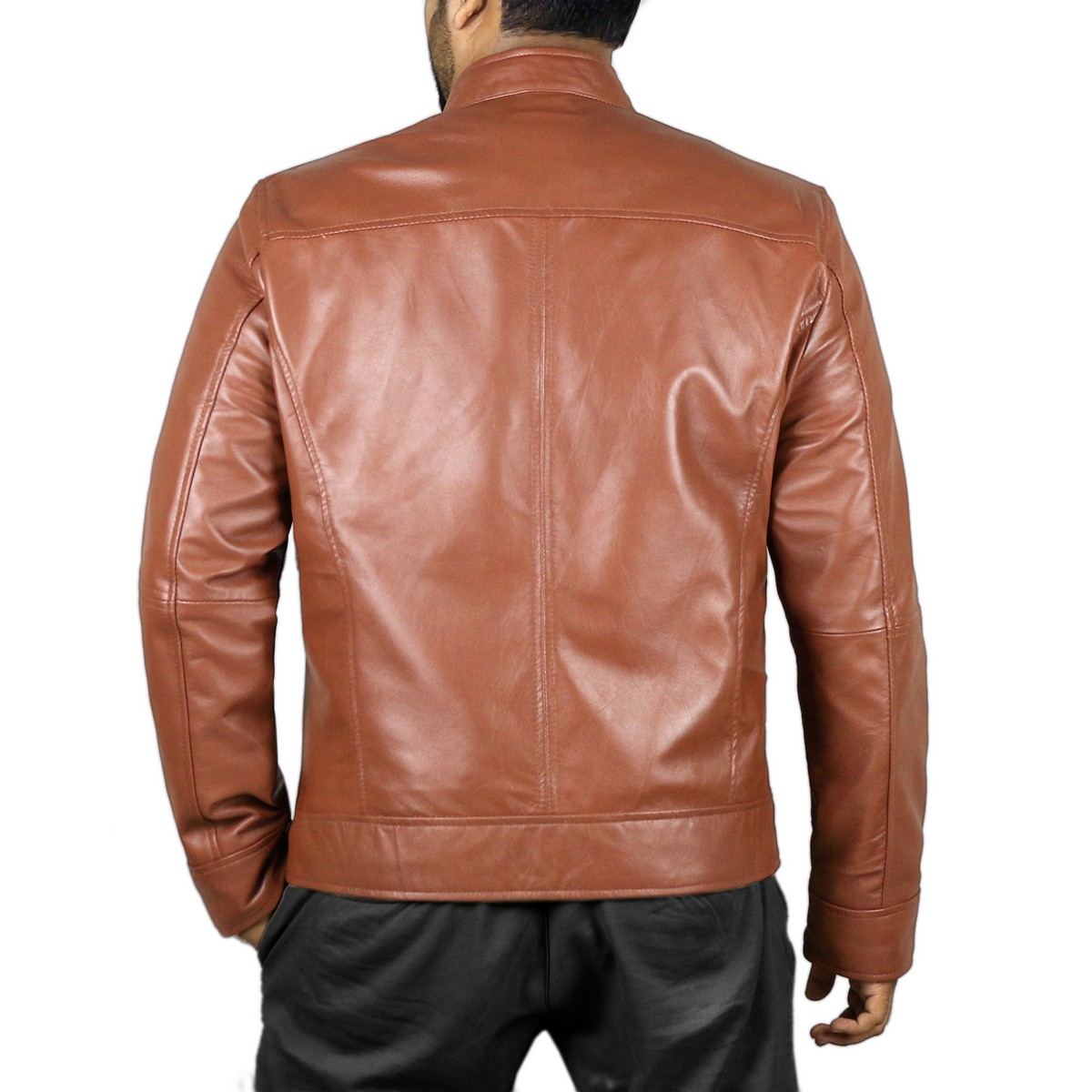 Zafy Leather Jacket Men's Tan Real Sheepskin Biker Cafe Racer Coat Jacket