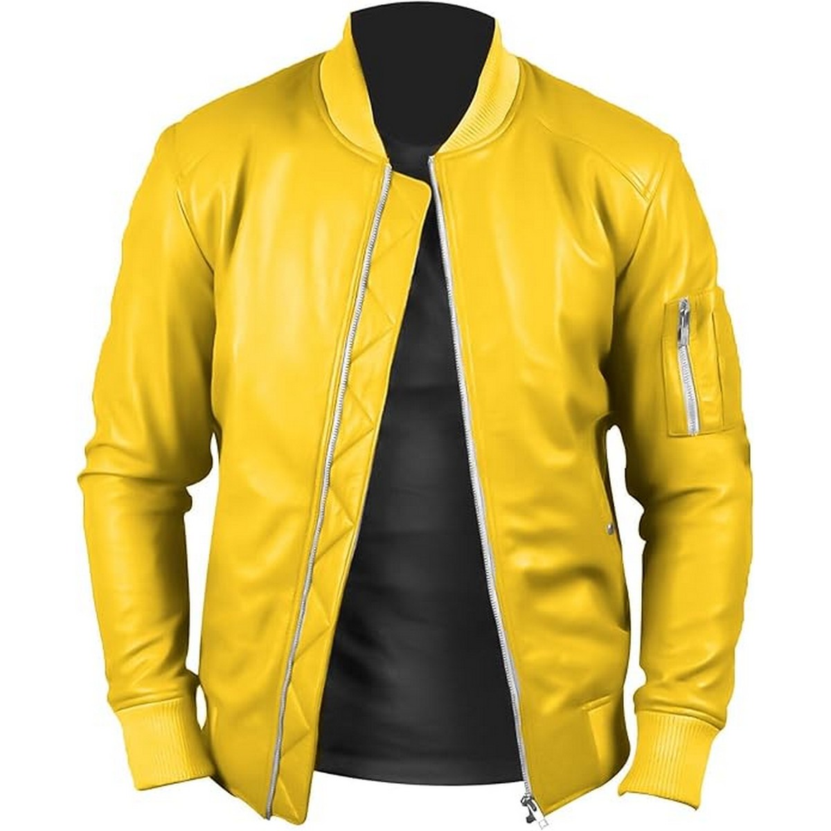 Zafy Leather Bomber Jacket For Men Real Sheepskin Yellow Cafe Racer Motorcycle Jacket
