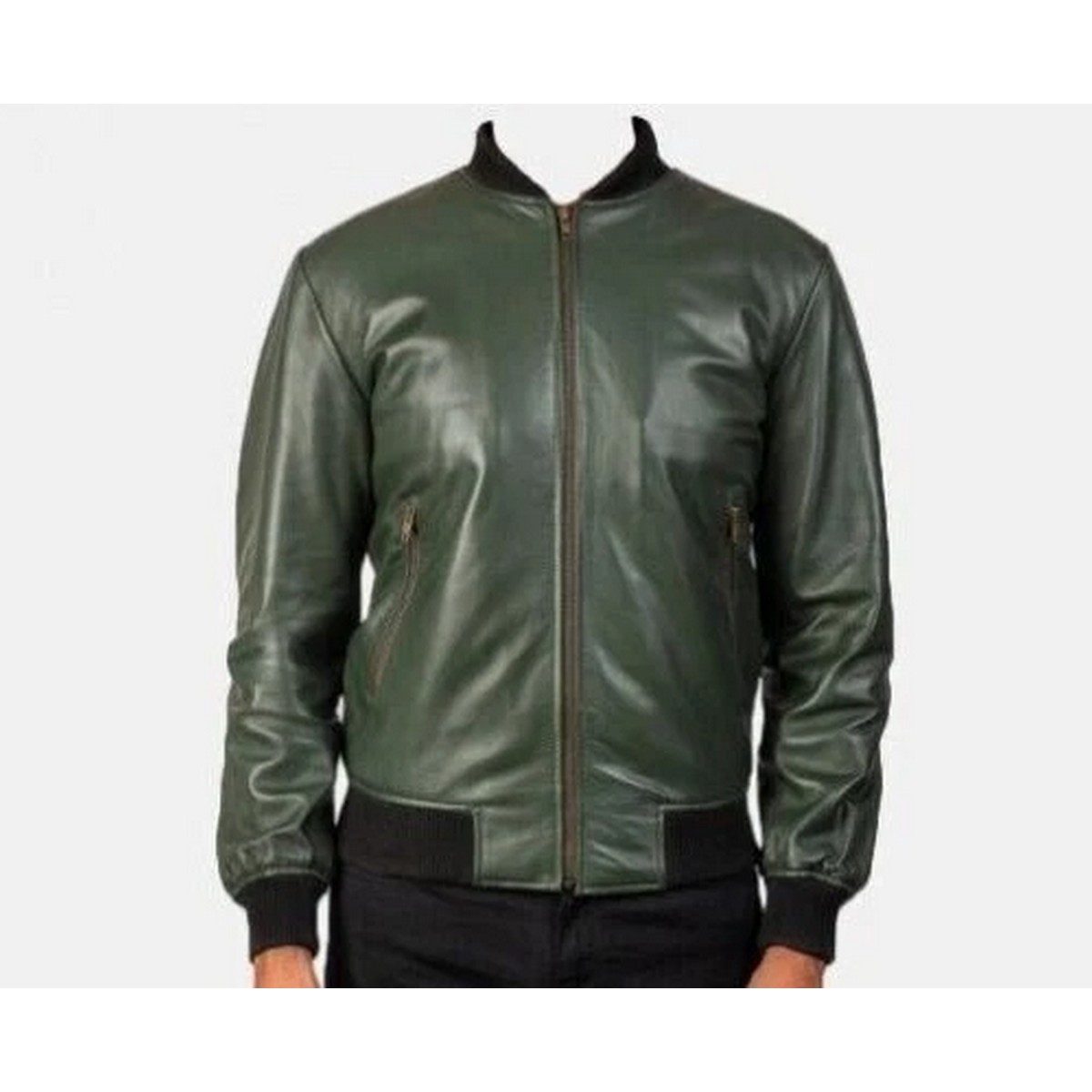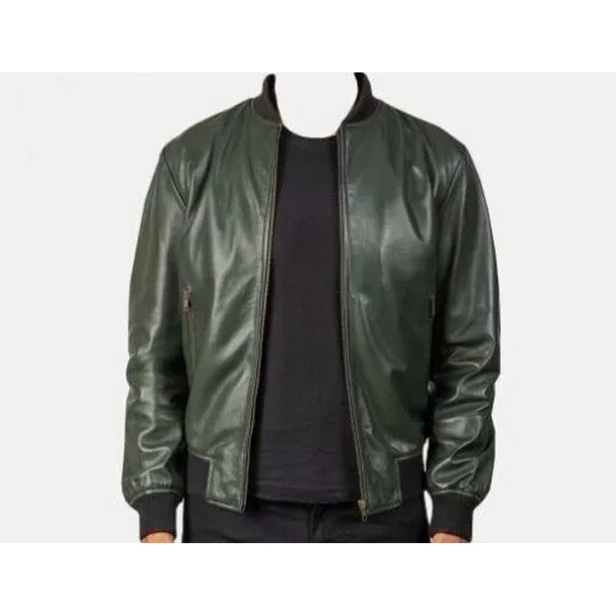 Zafy Leather Bomber Jacket For Men's Dark Green Genuine Leather Coat Jacket