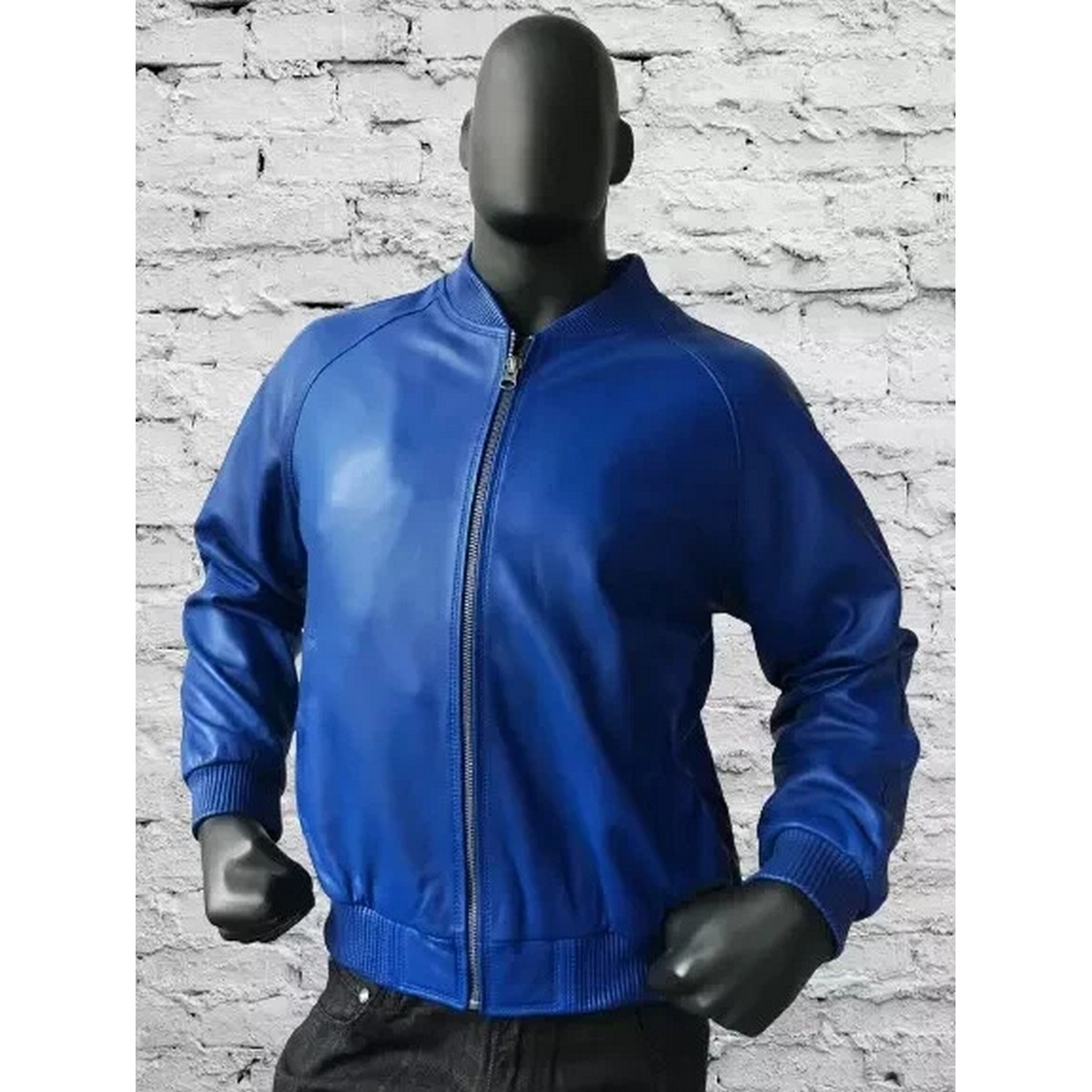 Zafy Leather Blue Genuine Real Soft Lambskin Leather Bomber Jacket For Men's