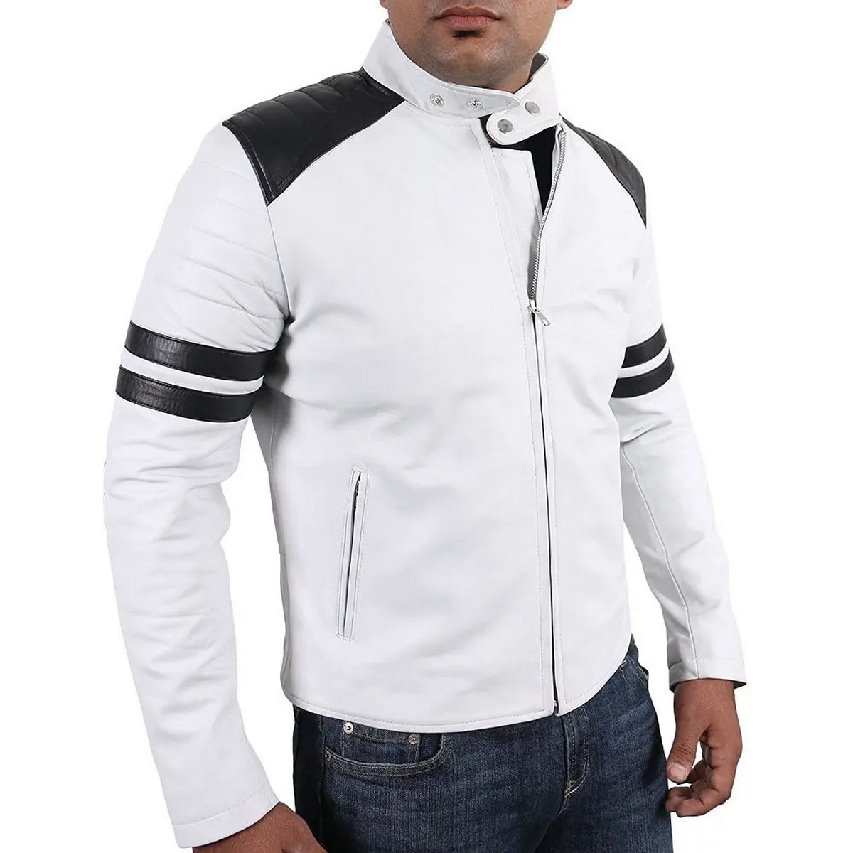 Zafy Leather Genuine Lambskin Leather White Men's Jacket Biker Motorcycle Jacket