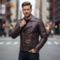 Zafy Leather Men's Tan Leather Biker Jacket Pure Sheepskin Leather Jacket