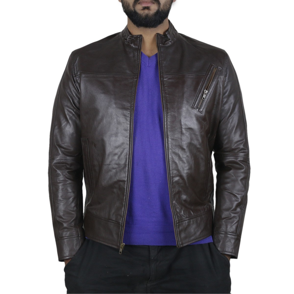 Zafy Leather Brown Leather Jacket Mens Real Sheepskin Biker Cafe Racer Jacket