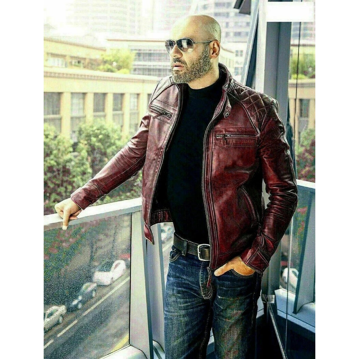 Zafy Burgundy Men's Leather Jacket 100% Genuine Soft Lambskin Biker Slim Fit Jacket