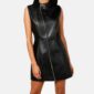 Luxury Women's Leather Dress Genuine Black Lambskin Leather Dress Sleeveless Paneled Dress Ladies Dress Coacktail Dress