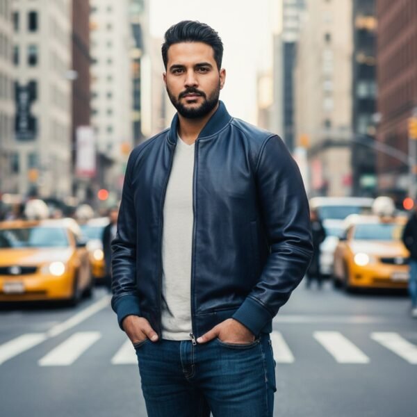 Break the mold with the Zafy Authentic Navy Blue Bomber Leather Jacket for Men, made from real lambskin leather for unmatched comfort and luxury. This bold, high-impact leather jacket features clean lines, refined hardware, and a crisp white finish that commands attention. The soft lambskin ensures a comfortable fit, while the biker-style details add edge and attitude. Ideal for fashion-forward men who love to lead, not follow, it is the ultimate expression of fearless style. Whether it’s a night out or a statement street look—stand tall in Zafy’s signature leather jackets. Get FREE DELIVERY worldwide. Available in all sizes. Order now!