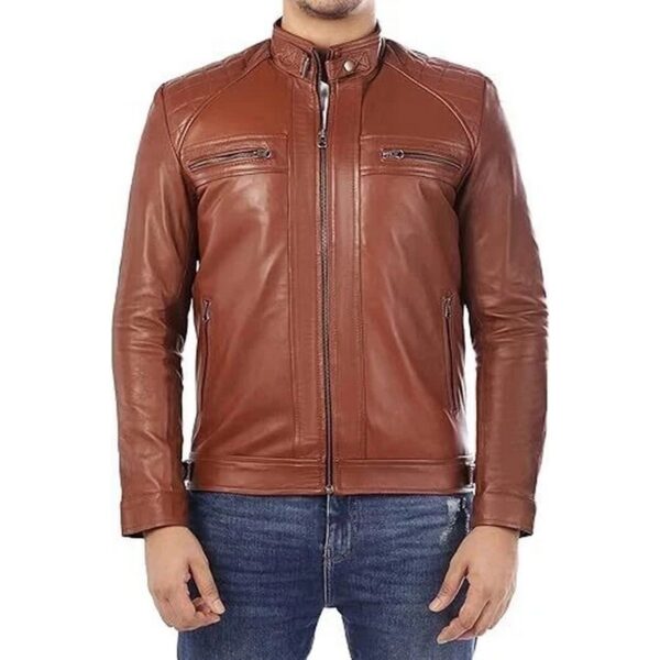 Experience the smooth sophistication of Zafy’s Cafe Racer Tan Biker Leather Jacket for Men, crafted from genuine lambskin leather. Inspired by speed and simplicity, this slim-fit design offers a minimalist look with high-impact style. Featuring a clean silhouette, zipper accents, and buttery-soft texture, this Biker Leather Jacket for Men feels just as good as it looks. Ideal for everyday wear or casual rides, its lambskin construction ensures long-lasting comfort. Dress it up or down—it’s versatile enough for any occasion. Ride in confidence, live in style—this cafe racer from Zafy is your go-to leather essential. Get FREE DELIVERY worldwide. Available in all sizes. Order now!