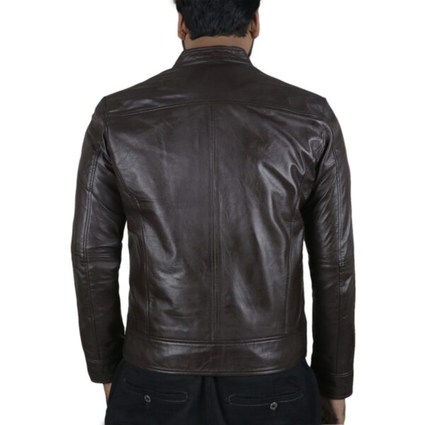 Zafy Leather Brown Leather Jacket Mens Real Sheepskin Biker Cafe Racer Jacket