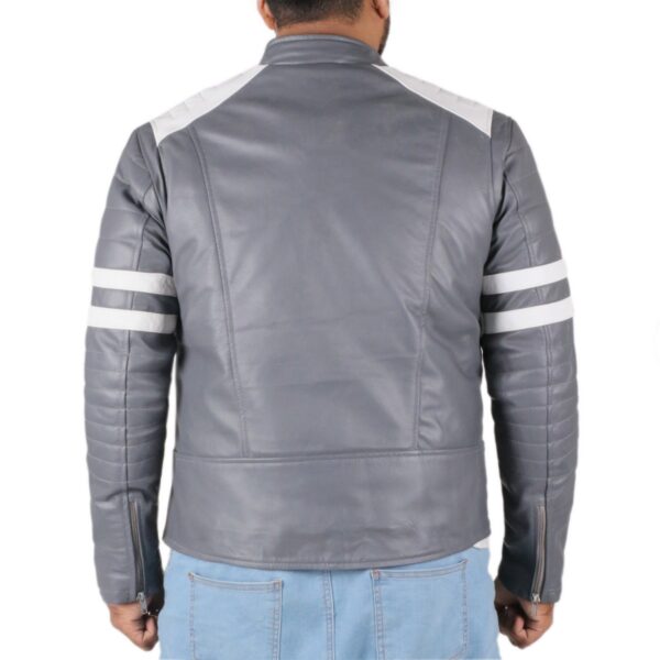 Indulge in ultimate riding experience with our Gray Biker Leather Jacket for Men. Crafted from Real Lambskin Leather, this slim-fit classic biker leather jacket boasts impeccable stitching for unmatched durability. The warm, soft satin lining ensures cozy comfort during every ride. Featuring Red striped designs in sleeves and a durable YKK Zip Closure, this moto leather jacket is designed for both function and flair. Available in all sizes, with custom-fit options to meet every man’s unique needs. Don’t miss the chance to enhance your riding experience with our New leather jacket for bikers. Get FREE DELIVERY worldwide, Order now!