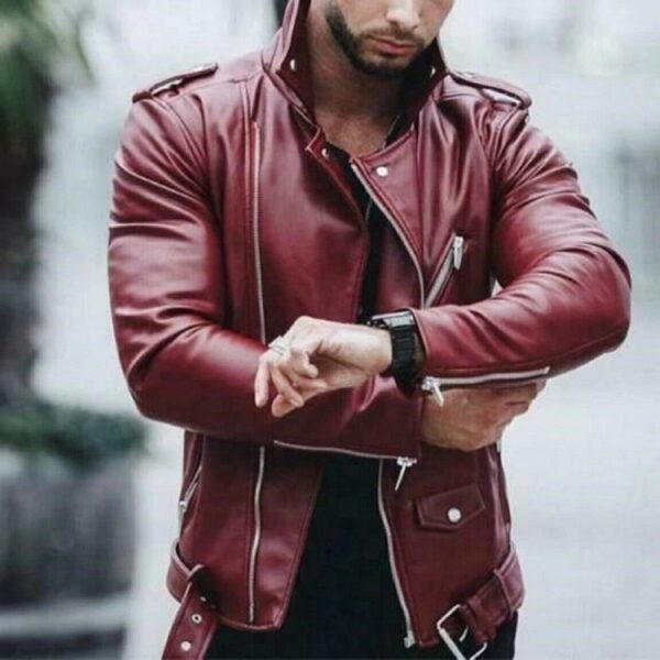 Gear up for your next adventure with our Burgundy Biker Leather Jacket for Men. This Biker leather jacket, made from pure Lambskin Leather, features a reliable YKK Zip Closure and a hand-made finish. It’s the ultimate choice for riders who value style and quality. Available in all sizes, also we provide custom-made designs so don’t hesitate to ask for plus size, with FREE DELIVERY worldwide. Order now and make every ride unforgettable!