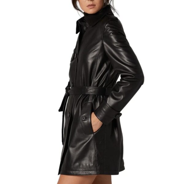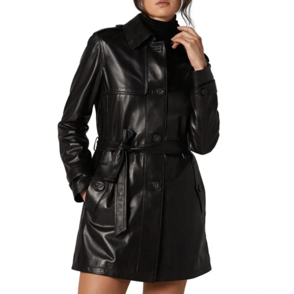 Women’s Leather Trench Coat 100% Genuine Lambskin Black Knee Length Coat